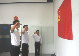 庆祝大会结束后,全体党员参加新党员入党宣誓仪式。在张建新带领下,两位新党员佩戴党徽,举起右拳,庄严神圣地向党旗宣誓,全体党员一起重温入党誓词。张建新对新党员提出了具体要求,希望大家永远记住今天对党发出的铮铮誓言,牢记党的宗旨使命,自觉履行党员义务,在各自岗位上倍加努力工作,用实际行动为党徽增光、为党旗添彩。新党员表示,在这个特殊的日子,举行入党宣誓,思想得到洗礼,党性得到增强,在今后工作学习生活中要认真践行入党誓词,严以律己、谦虚谨慎、务实进取,时刻以党员标准检视自己,争做新时代合格党员。