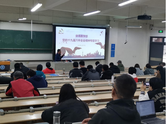 11月17日下午,yl23455永利集团在嘉陵江路校区一号教学楼B125召开党的十九届六中全会精神专题学习会。会议由yl23455永利集团主任王龙主持,全体教职员工参加学习。