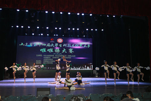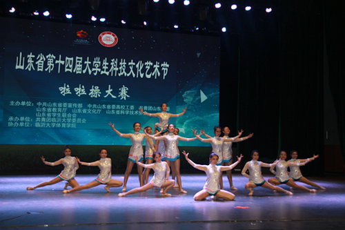 此次大赛由省委宣传部、省委高校工委、团省委、省教育厅、省文化厅、省科协、省学联联合主办,共青团临沂大学委员会承办,来自省内34所高校的45支代表队分别参加了专业组与普通组花球啦啦操、爵士啦啦操、街舞啦啦操和技巧啦啦操四个单项的竞赛。其中普通组花球啦啦操参赛队28支、普通组爵士啦啦操参赛队7支,我校健美操队分别以总分第二和第一的成绩荣获两个项目一等奖。这是继获得第十三届山东省大学生科技文化艺术节啦啦大赛二等奖后的新的历史突破。