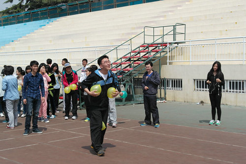 本次趣味运动会项目包括企鹅漫步、跳大绳、保龄球、另类乒乓等团队合作项目,13级每个班级有2支代表队,每支代表队由4名男生和4名女生组成。别具一格的玩法,新颖的比赛方式,每一支代表队都热情高涨,比赛中同心协力,你追我赶,欢笑声回荡在空气中。