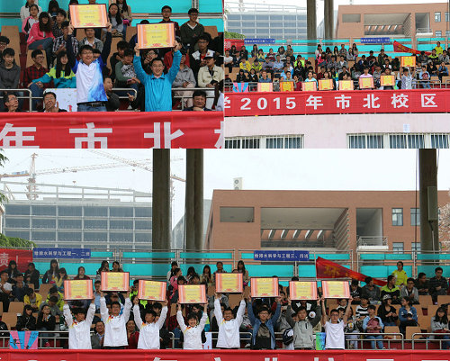 5月8日、9日,我校2015年田径运动会在市北校区举行。校领导及各职能部门、各学院负责人出席了开幕式和闭幕式。