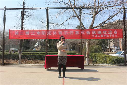 3月8日,第二届阳光体育节开幕仪式暨土木工程学院新老生篮球交流赛在四公寓篮球场正式开幕,土木工程学院党总支副书记邹传波,团总支书记邵先锋,年级辅导员王中帅、韦子木、刘欣然参加开幕式。