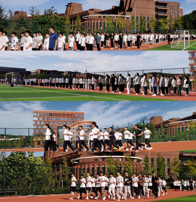 “百折不挠,刚毅厚重,勇承重载,1!2!3!4!”,伴随着整齐的队列行进,同学们激情洋溢的呼喊着嘹亮的口号,干净整洁的跑道上,一个个充满青春朝气的身影,迎着爽朗的秋风奔跑在灿烂的阳光下。“一边跑一边喊,一开始确实有点累,不过整个班一起喊起来之后,声势震天的感觉很带劲儿,大家都想着再大声点,把对面班级的喊声压下去,不知不觉就跑完了,出了一些汗,但是不觉得有多累!”信息与控制工程学院新生王子宁一边擦去额头的汗珠一边兴奋的说到。“是呀,以前的中学体育课没怎么练过队列,今天体育老师一边给口令一边做指导,我们的动作一次比一次整齐标准,很有成就感!”管理工程学院新生何梓鹏接过话说,脸上洋溢着运动带来的快乐。创新的授课方式引发学生对体育课的浓厚兴趣,热身跑加大声呼喊班级口号,锻炼心肺功能的同时融入思想教育,促进学生身心健康全面发展,提高了课堂教学实效。