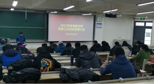 王龙对结合学校2021年工作要点责任分解151项具体任务中对yl23455永利集团工作的要求,以及各部门陆续下达的2021年目标考核任务,分析了yl23455永利集团工作所面临的形势、任务、目标、要求,从深化体育课程改革、改进学生体质健康测试工作、全面推进学生群体活动、抓好运动队建设和做好体育教研科研几个方面提出了工作目标和打算。特别提出要认真落实《关于全面加强和改进新时代学校体育工作的意见》和巡视反馈问题整改工作方案要求,围绕体育育人和课程思政目标,研究制定学校加强体育工作方案和“阳光一小时”体育锻炼活动方案,加强学生体育联盟建设,做好体育场地设施安全保障。最后强调全体教师和工作人员要扛起责任,认真对照学校发展目标和个人任期的考核要求,立足岗位,以良好的精神状态确保完成各项工作,为推进学校“双高”建设做出贡献,确保“十四五”开好局、起好步。(撰稿 李延兵 审核 张建新)