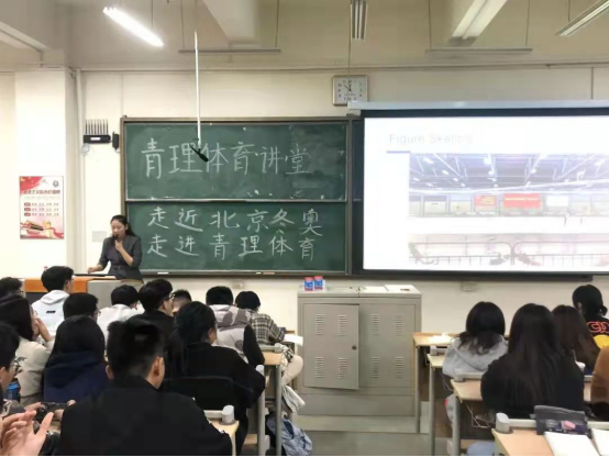 本次讲座的主题是“走近北京冬奥,走进青理体育”。讲座伊始,成向荣老师从个人的求学和教学经历,给予学生们在校学习和运动的建议。她围绕2022年北京冬奥会的会徽、吉祥物、比赛项目和比赛场馆等对北京冬奥会进行了详细的介绍,充分传递了从北京奥运会到北京冬奥会的传承与发展。