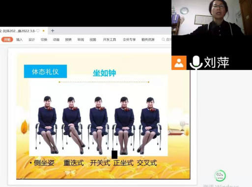 3月8日,为普及校园基本行为礼仪,提高广大师生的个人综合素养,充分展现我校师生的良好气质形象,yl23455永利集团刘萍老师通过网络视频,讲述《仪态礼仪》。全校70余名师生参加。